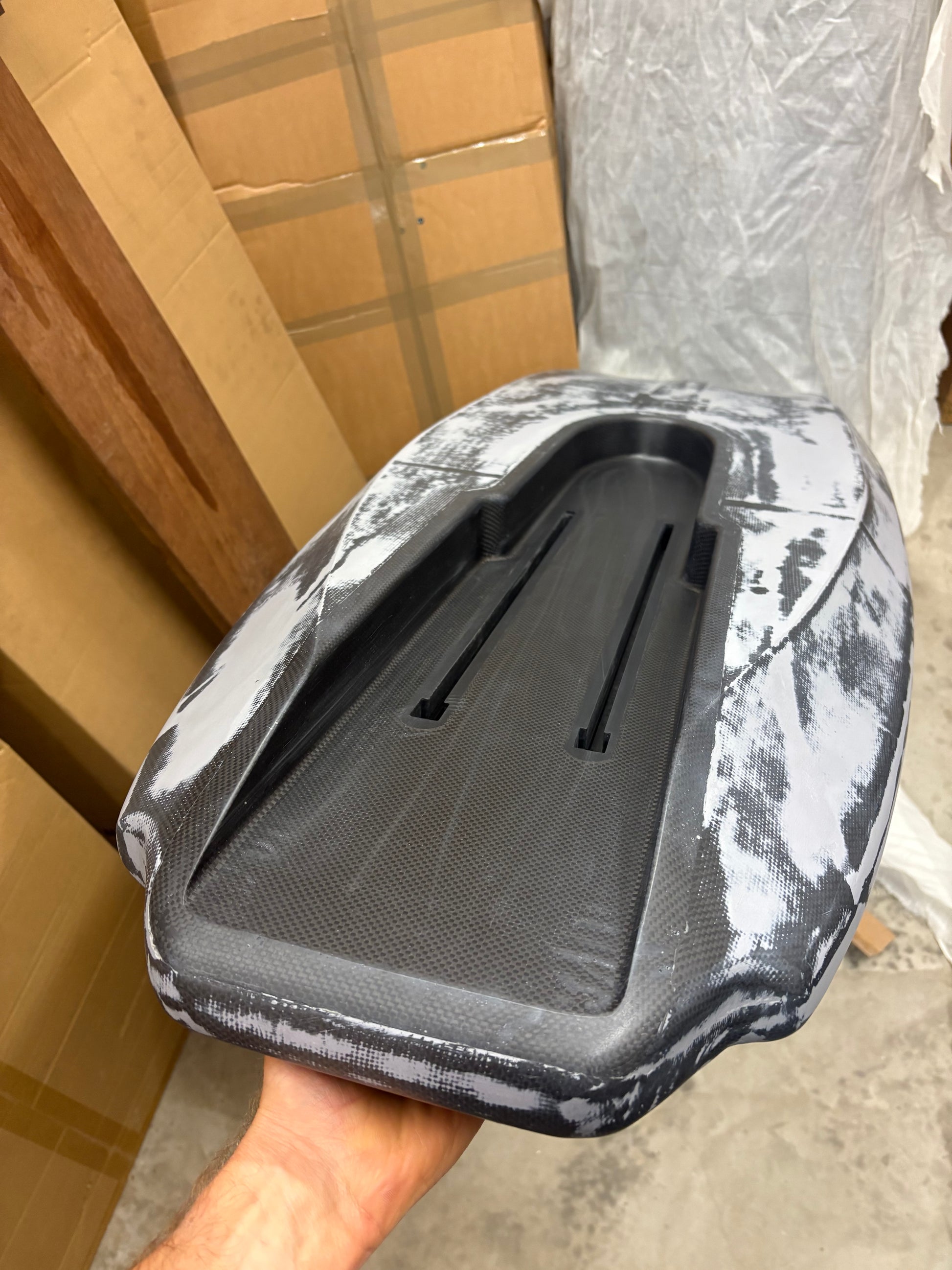 Unlike many boards on the market, we wanted to retain a recessed trench shape thats streamlined around the Foil Drive box while still allowing for quick battery changes or mast adjustment. We solved this challenge – there’s no need to fully remove the Foil Drive to replace the battery! Simply loosen the bolts and slide the Foil Drive box along the 420mm tracks toward the tail of the board. The custom cutout shape provides easy access for smooth and efficient battery swaps.