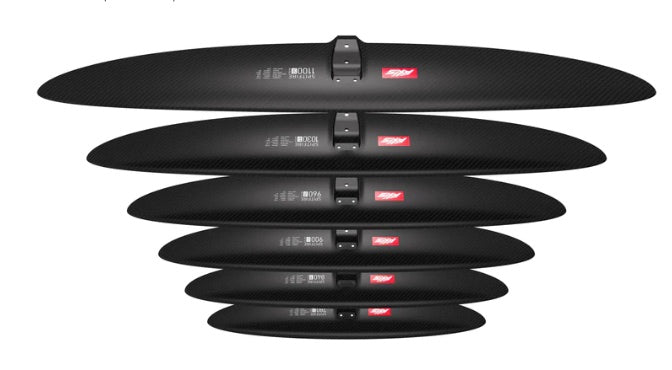You’ll recognise it by its distinctive elliptical outline, straight median line and lack of aggressive turndown through the tips. Moderate chord lengths, that taper smoothly from the centre to the tips, encourage smooth, predictable but precise turning. Reduced foil thickness for enhanced top end to compliment the greater chords providing easy low end.Many of these attributes are shared by the ARTPRO Range of wings, and in fact much of what we learned in the development of that line fed into the Spitfire’s make-up. Through the development process, we put the Spitfire through its paces. The smaller sizes are fast with explosive turning. The larger sizes are great for smaller spots and larger riders. The Spitfires are versatile front wings, able to ride waves or flat water across prone, SUP, winging, wake, downwind, lake pumping and kite foiling disciplines.They do it all.Spitfire foils are ideally matched with our Black Advance fuselage and Progressive or Skinny rear wing ranges.
