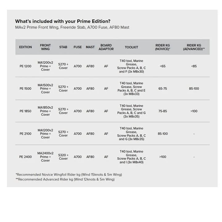 It’s the ideal starter kit for progressing in all foil disciplines. Compatible with all North Foil products and fully interchangeable, the Prime Edition is made up of
