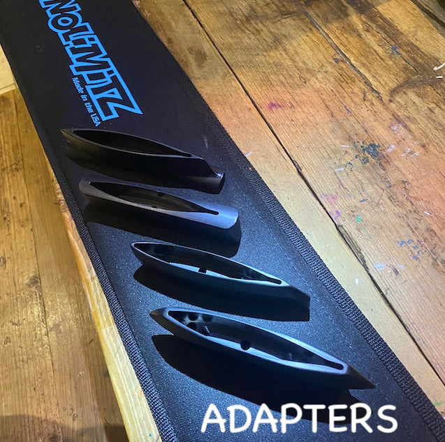 Jim Stringfellow makes a wide variety of adapters that go onto the NoLimitz Takuma 3 bolt adapter, making that mast compatible with various additional foil brands. NoLimitz does not offer a universal fuselage adaptor; they offer brand-specific adaptors that are permanently attached to each mast.
